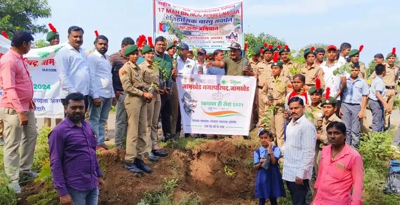 “स्वभाव स्वच्छता – संस्कार स्वच्छता”अभियान अंतर्गत . दोन ऑक्टोबर राष्ट्रपिता महात्मा गांधी जयंती व लालबहादूर शास्त्री जयंती निमित्त 17 महाराष्ट्र बटालियन एनसीसी अ.नगर जामखेड विभाग व जामखेड नगर परिषदेच्या वतीने भव्य स्वच्छता जनजागृती रॅली, एक पेड मा के नाम उपक्रम अंतर्गत 120 झाडांचे वृक्षारोपण करून जामखेडचे ऐतिहासिक वास्तू नागेश्वर मंदिर परिसर व वैतरणा नदी परिसर स्वच्छता करण्यात आले.