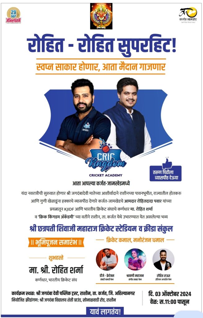 राशीन येथे नवरात्रीत ऐतिहासिक सोहळा, क्रिकेटर रोहित शर्मा यांच्या उपस्थितीत श्री छत्रपती शिवाजी महाराज क्रीडा संकुलाचे भूमिपूजन