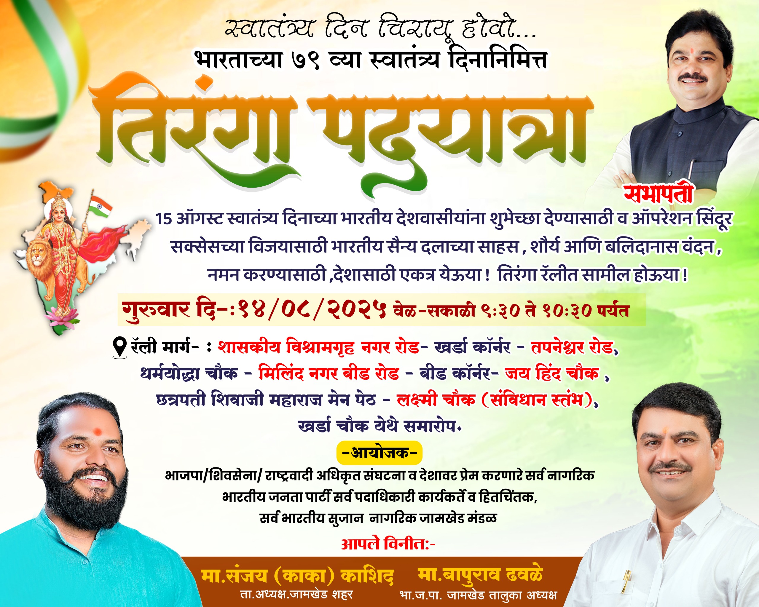 तिरंगा पदयात्रेत सहभागी व्हा – संजय काशिद